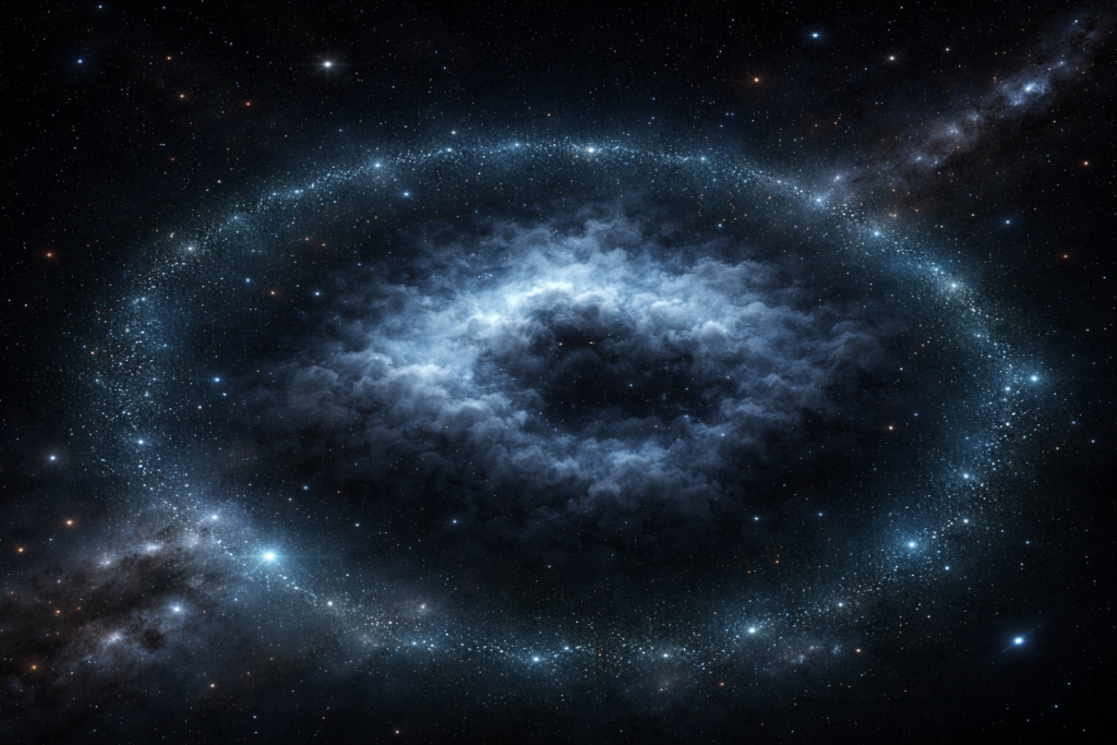Hubble Space Telescope observations have confirmed ‘Cloud-9’, a rare galaxy-scale object with no stars, dominated by dark matter and neutral hydrogen gas.